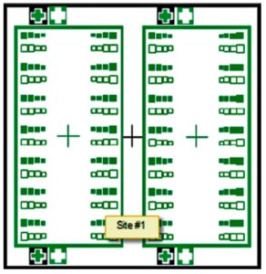 A previous study [1] looked at wafer substrates and focused on proving that automated optical inspection (AOI) feed-forward data could correct for the predefined die placement offsets. It established the AOI feed-forward accuracy to be within +/-2μm. The work described below uses a 510mm x 515mm x 1.1mm rectangular glass panel as the test vehicle to match the stepper and AOI panel stage grids and measure the AOI accuracy. The test panel was patterned using the same method as the wafer study. The test reticle used a single die “Pad” image, which was patterned across the entire panel. The pad test pattern (Figure 2), with no offsets, was then measured using the stepper and AOI system at two points per die (top and bottom).