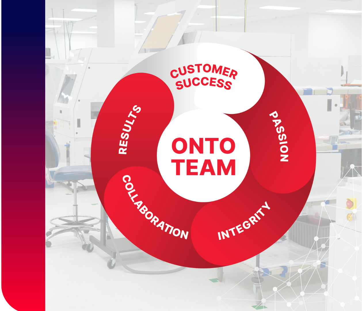 Onto Innovation’s guiding principle is Customer Success. Our core values of Passion, Integrity, Collaboration and Results unite us as a team and fuel our common goal to ensure that our actions are directed by those we value the most: our customers.