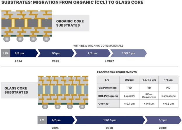 Figure 1: Roadmap for organic and glass core substrates
