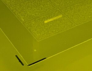 It is also necessary to measure the thickness of the glass before starting the TGV process. Thickness uniformity across the glass panel is key. Consider this example: let us say that the thickness of a glass panel is 400µm at one end of the panel and 300µm at the other end. While this is an extreme example, you can imagine the effect that this might have on TGV height across the panel and the disastrous effect it would have on the performance of any device made from this glass substrate.